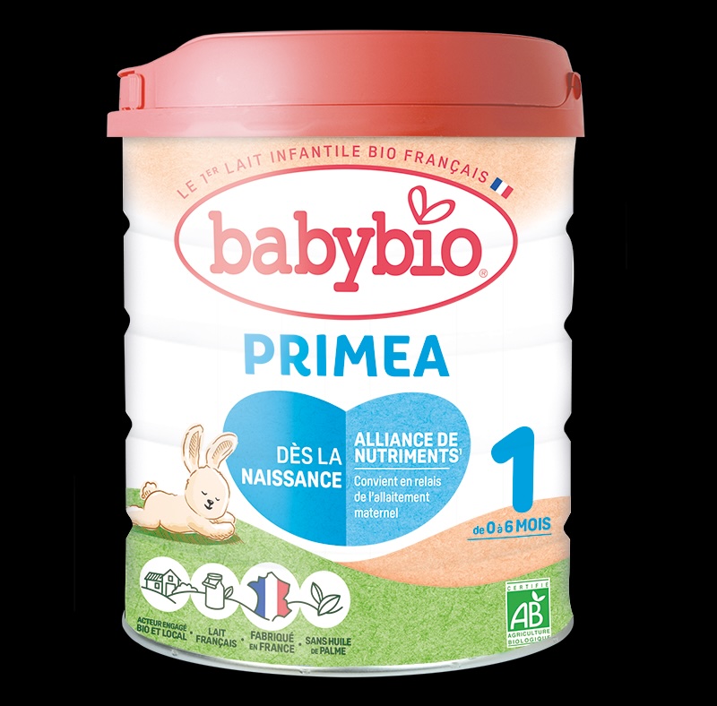 | Caractéristiques | Formule qui répond à l’essentiel pour tous les bébés bien portants, le tout sans huile de palme. Formule contenant : Deux acides gras essentiels : des oméga 3 (DHA), conformément à la réglementation, et des oméga 6 (ARA) (teneurs en DHA et ARA identiques) selon les recommandations pédiatriques (1)(2) nécessaires au bon développement du cerveau et de la vision* du nourrisson (3)(4). Du lait écrémé issu de vaches élevées en France dans le respect du bien-être animal (accès au plein air, interdiction de traitement préventif par antibiotiques), conformément à la règlementation relative à la production biologique. *pour un apport quotidien de 100mg de DHA. |