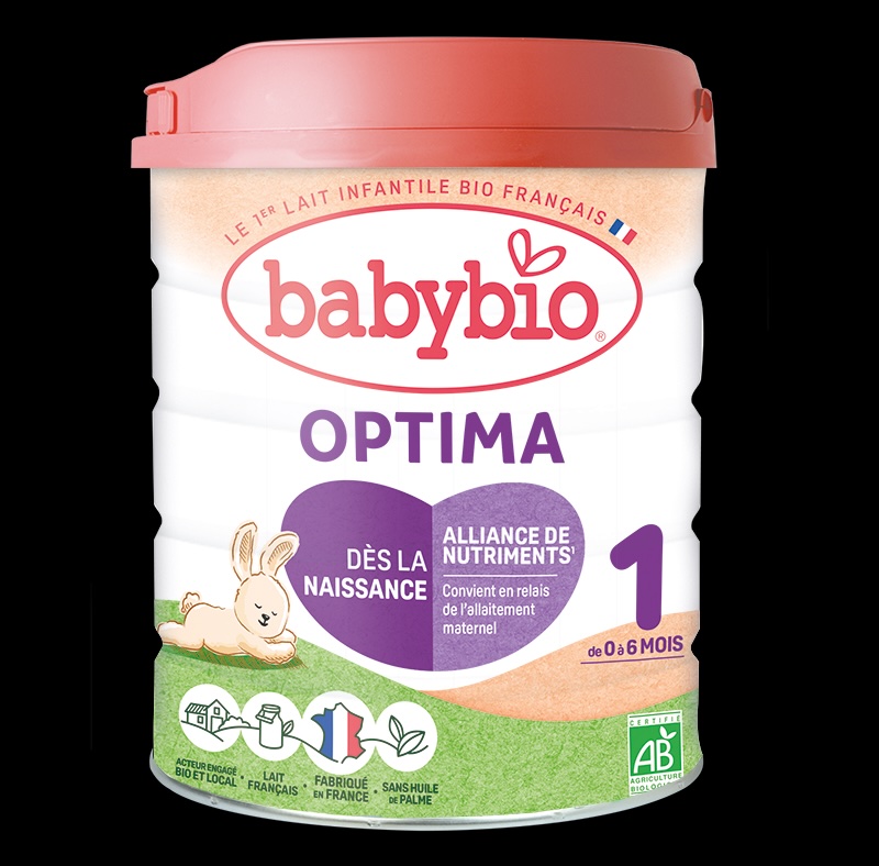 | Caractéristiques | Les laits infantiles bio Optima 1, 2 et 3 offrent une solution aux parents à la recherche d’une formule enrichie en fibres bio et ferments lactiques, le tout sans huile de palme. Ces formules contiennent : • Des prébiotiques bio (fibres FOS/GOS) et probiotiques (Bifidobacterium lactis), éléments naturellement présents dans le lait maternel, reconnus pour leurs bénéfices sur le confort digestif ainsi que sur le système immunitaire du nourrisson (1)(2). • Deux acides gras essentiels - à savoir des oméga 3 (DHA), conformément à la réglementation, et des oméga 6 (ARA), uniquement dans notre formule 1er âge (teneurs en DHA et ARA identiques) selon les recommandations pédiatriques (3)(4) - nécessaires au bon développement du cerveau et de la vision* du nourrisson (5)(6). • Du lait écrémé issu de vaches élevées en France dans le respect du bien-être animal (accès au plein air, interdiction de traitement préventif par antibiotiques), conformément à la règlementation relative à la production biologique. *pour un apport quotidien de 100mg de DHA. |