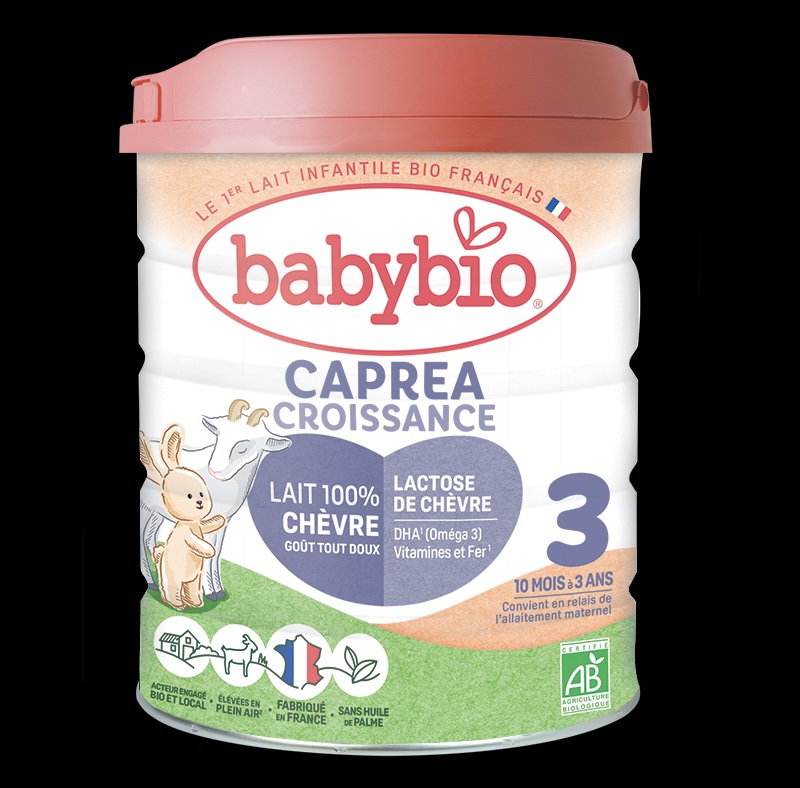| Caractéristiques | solution aux parents à la recherche d’une alternative aux formules à base de lait de vache, le tout sans huile de palme. Ces formules contiennent : • Deux acides gras essentiels - à savoir des oméga 3 (DHA), conformément à la réglementation, et des oméga 6 (ARA), uniquement dans notre formule 1er âge (teneurs en DHA et ARA identiques) selon les recommandations pédiatriques (1)(2) - nécessaires au bon développement du cerveau et de la vision* du nourrisson (3)(4). • Du lait écrémé issu de chèvres élevées dans le respect du bien-être animal (accès au plein air, interdiction de traitement préventif par antibiotiques), conformément à la règlementation relative à la production biologique. *pour un apport quotidien de 100mg de DHA. |