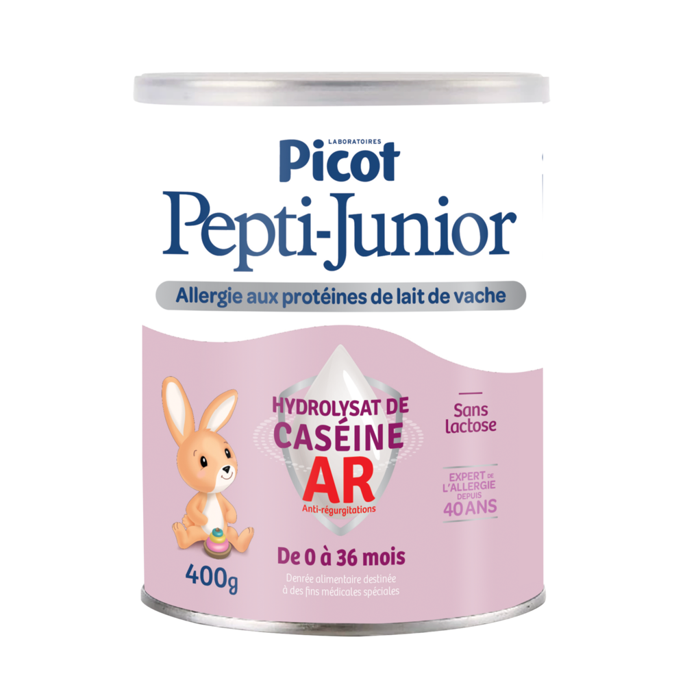 | Indications | Picot Pepti-Junior Hydrolysat de Caséine AR est indiqué aux nourrissons de 0 à 12 mois et enfants de 1 à 3 ans en cas d'allergie aux protéines du lait de vache associée à des régurgitations ou à des reflux gastro-oesophagiens, sévères à modérés, fréquents et persistants. |