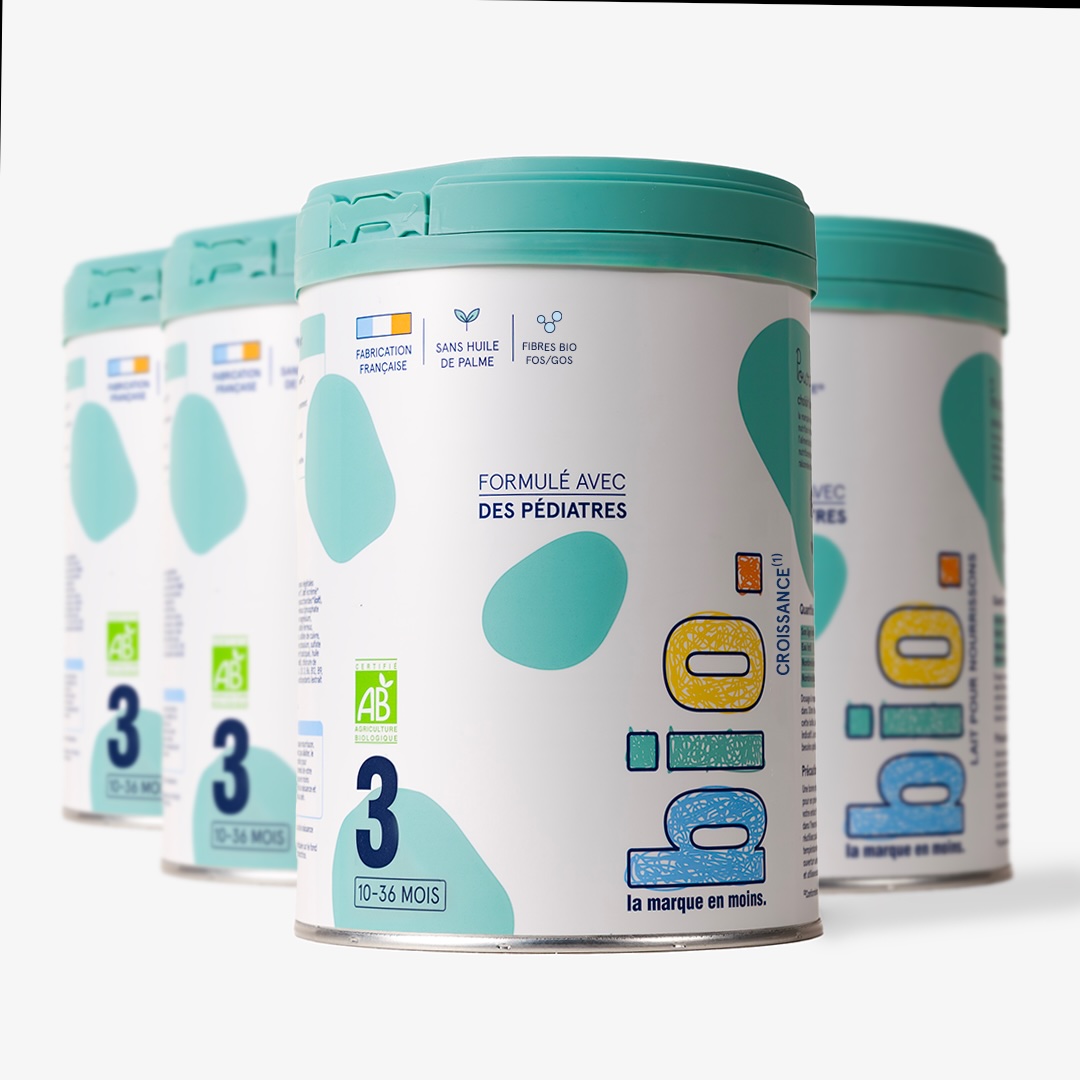 | Caractéristiques | La marque en moins s'est associée à un laboratoire, expert de la nutrition infantile. Inspirée de plus de 100 ans de recherche sur l'alimentation des tous-petits, notre formule répond aux besoins nutritionnels de votre bébé tout en agissant pour une agriculture raisonnée et le respect de la biodiversité. Oméga 3 (DHA), contribue au développement normal de la vue des nourrissons jusqu'à 12 mois. Circuit court. Fabriqué avec du bon lait écrémé collecté localement, en France. Fibres bio GOS et FOS |